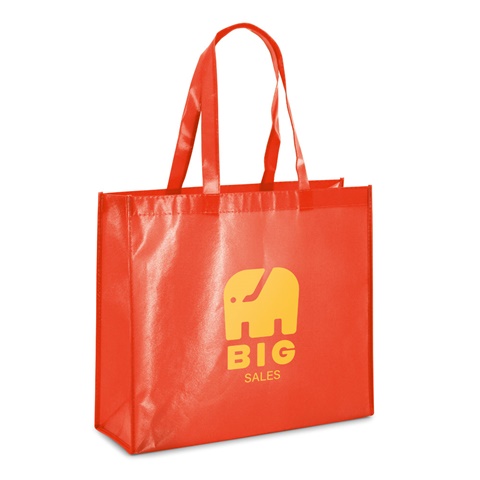 Laminoitu kuitukankainen kassi (110 g/m²), jossa on 60 cm kahvat ja kiiltävä laminointi. 400 x 360 x 120 mm
