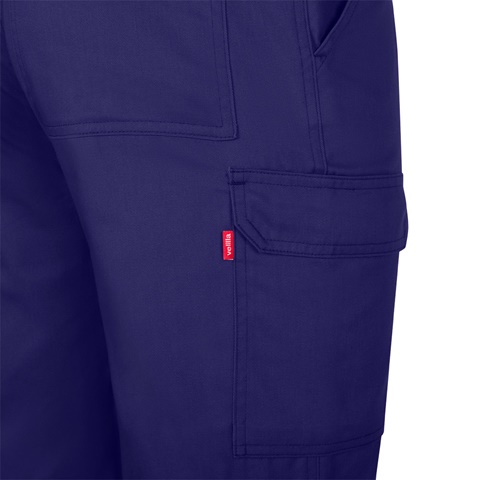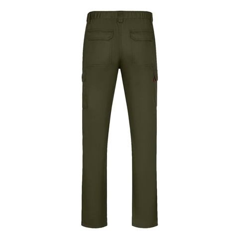 Monitaskuiset twill-housut (190 g/m²) puuvillaa (35 %) ja polyesteriä (65 %). Joustava vyötärönauha ja kuusi taskua (2 ranskalaista taskua, 2 sivutaskua ja 2 paljetaskua takana). Koot: 34, 36, 38, 40, 42, 44, 46, 48, 50, 52, 54, 56, 58, 60, 62, 64